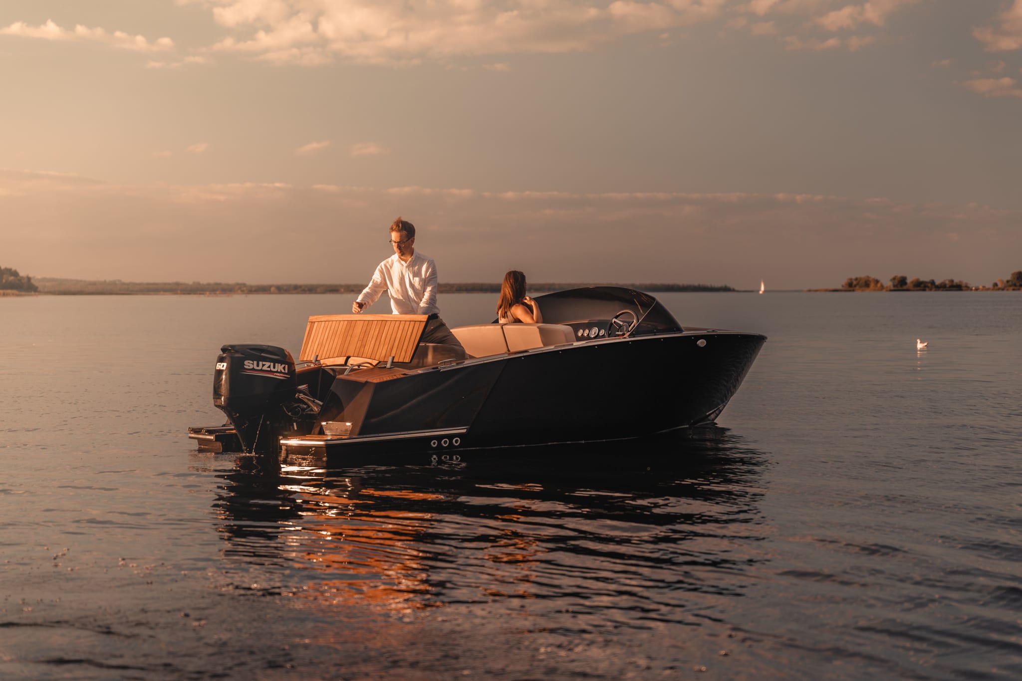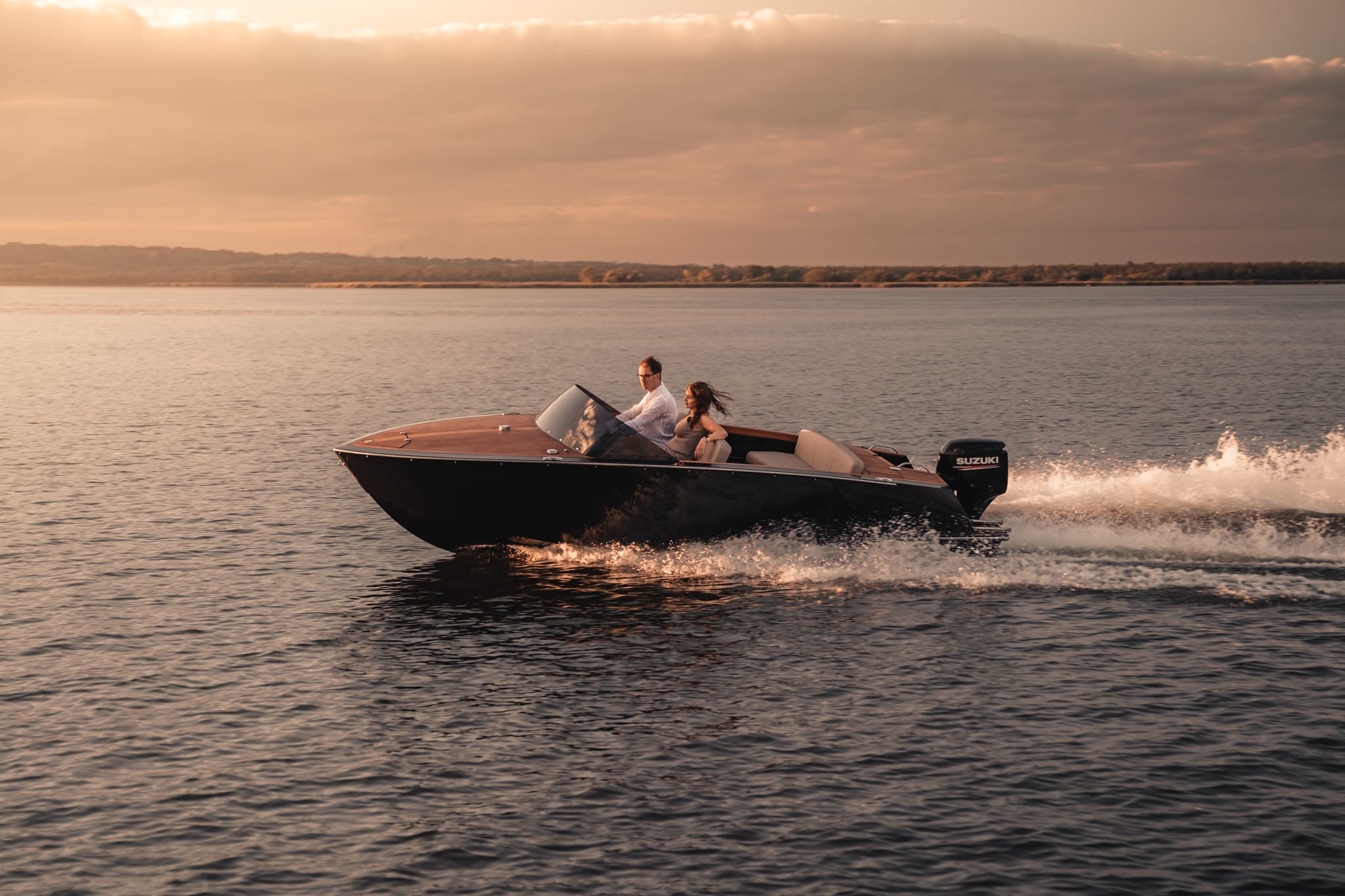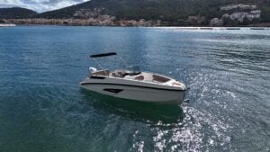 Das Modell Bowrider verfügt über ein offenes Bugdesign mit bequemen Sitzgelegenheiten. Dank der umkehrbaren Rückenlehnen und des mittig positionierten Tisches lässt sich das Cockpit leicht in einen geselligen Bereich verwandeln. Eine optionale „U“-förmige Sitzkonfiguration schafft eine flache Sonnenliegefläche (1,5 x 1,8 m). Unter der hinteren Sitzbank gibt es Platz für einen Schubladenkühlschrank und zwei große Staufächer. Der hintere Deckskasten bietet Platz für einen klappbaren Sonnenschirm. Die Flying Shark 5.7 Serie wurde entwickelt, um die individuellen Bedürfnisse jedes Benutzers zu erfüllen, und bietet eine Vielzahl von Konfigurationen, um das Boot individuell anzupassen. Sie wurde für den Elektroantrieb gebaut…
